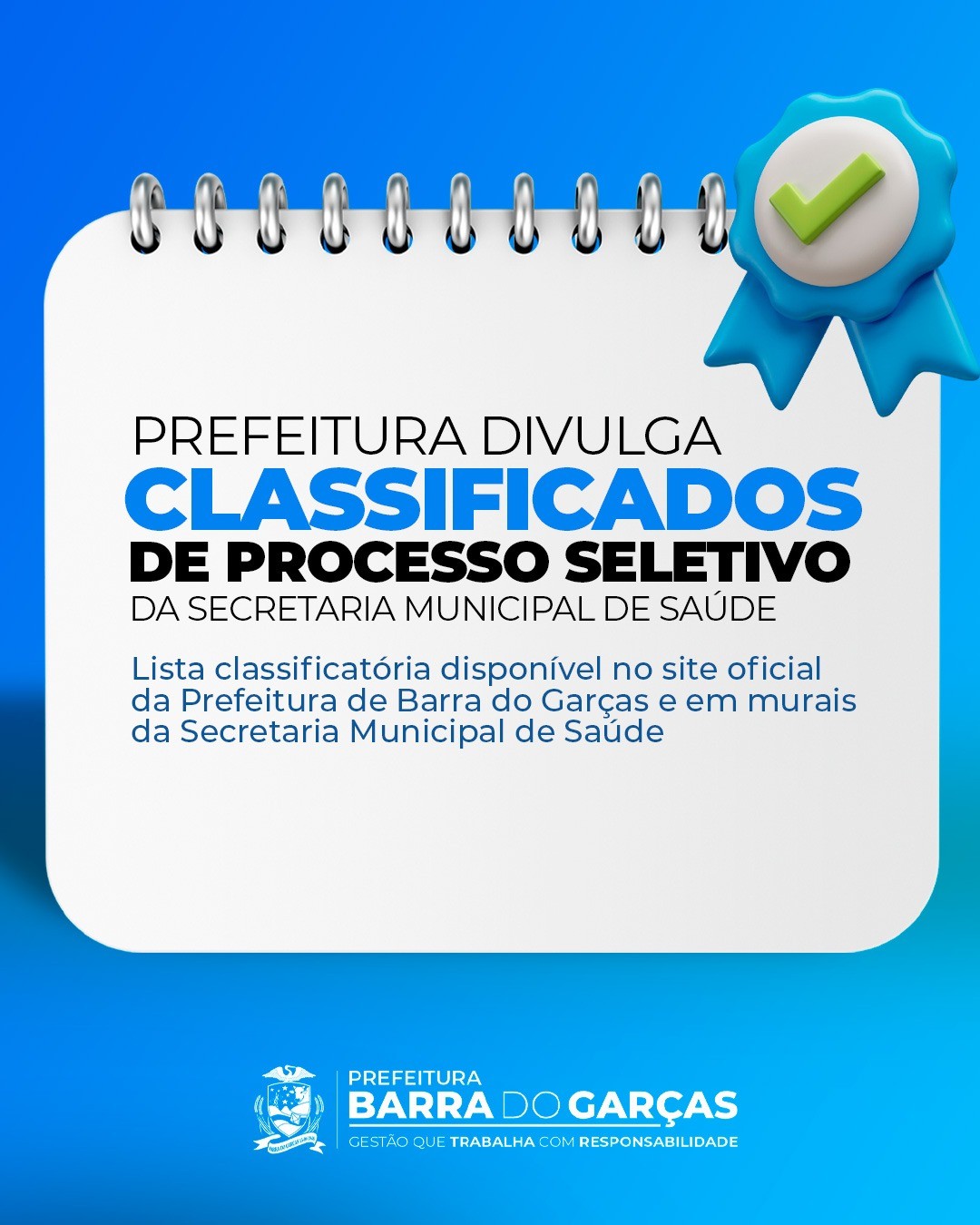 A Prefeitura de Barra do Garças, por meio da Secretaria Municipal de Saúde, divulgou, nesta sexta-feira (31), o resultado classificatório do processo seletivo simplificado para a contratação de profissionais em regime temporário. A lista com os nomes classificados pode ser conferida no site da prefeitura ou nos murais da secretaria.