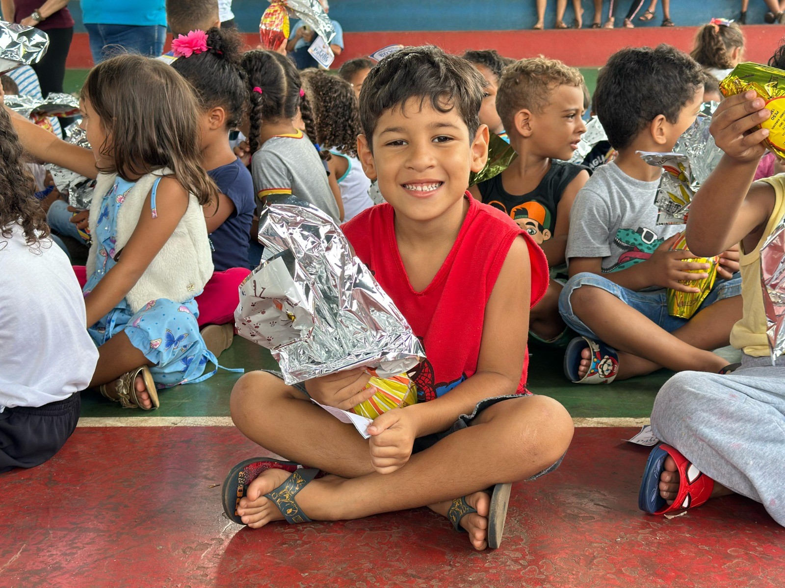 Os ovos de chocolate foram entregues durante as atividades regulares nos Centros Municipais de Educação Básica (CMEB) e Infantil (CMEI), na manhã desta quarta-feira (16), incluindo as escolas indígenas da Terra Indígena São Marcos.