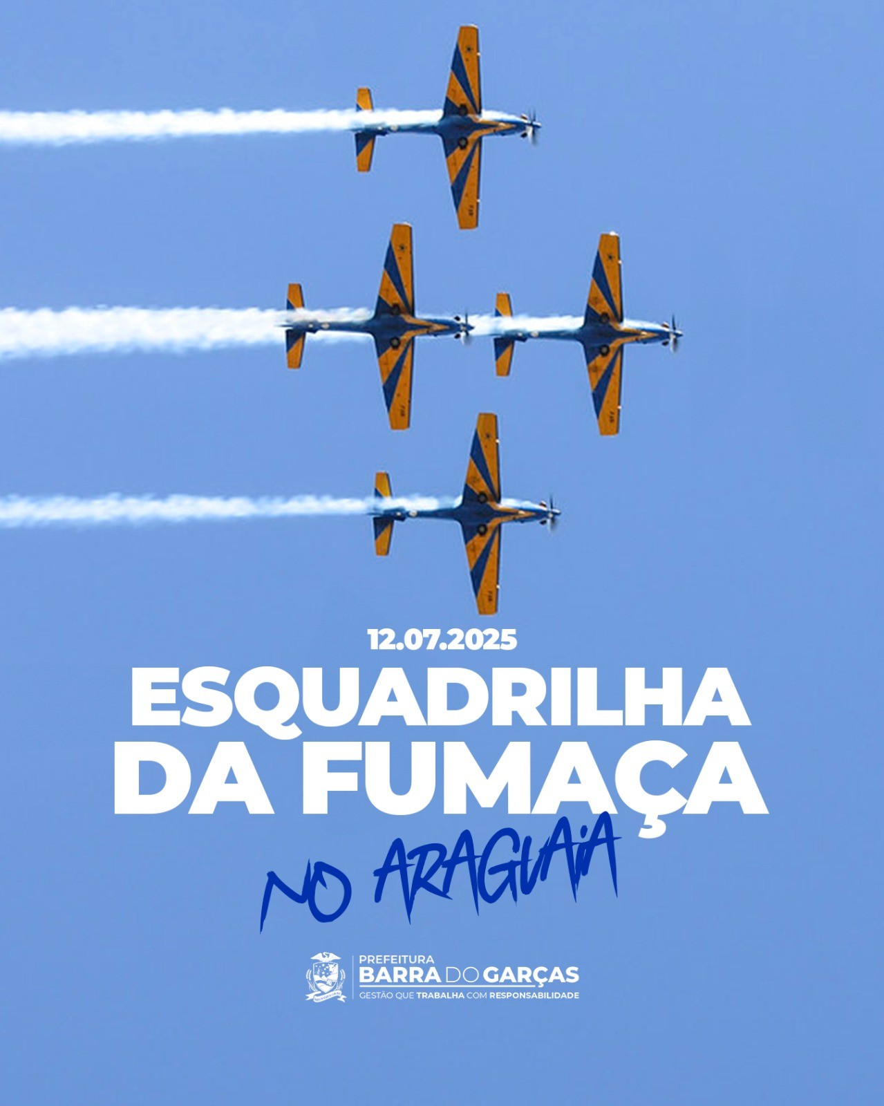 Após oito anos, o céu de Barra do Garças voltará a ser palco de um grande espetáculo: o Esquadrão de Demonstração Aérea (EDA), também conhecido como “Esquadrilha da Fumaça”. As apresentações com manobras sincronizadas em aviões poderá ser contemplada pelo público no dia 12 de julho, às margens do Rio Araguaia, com horário a definir.