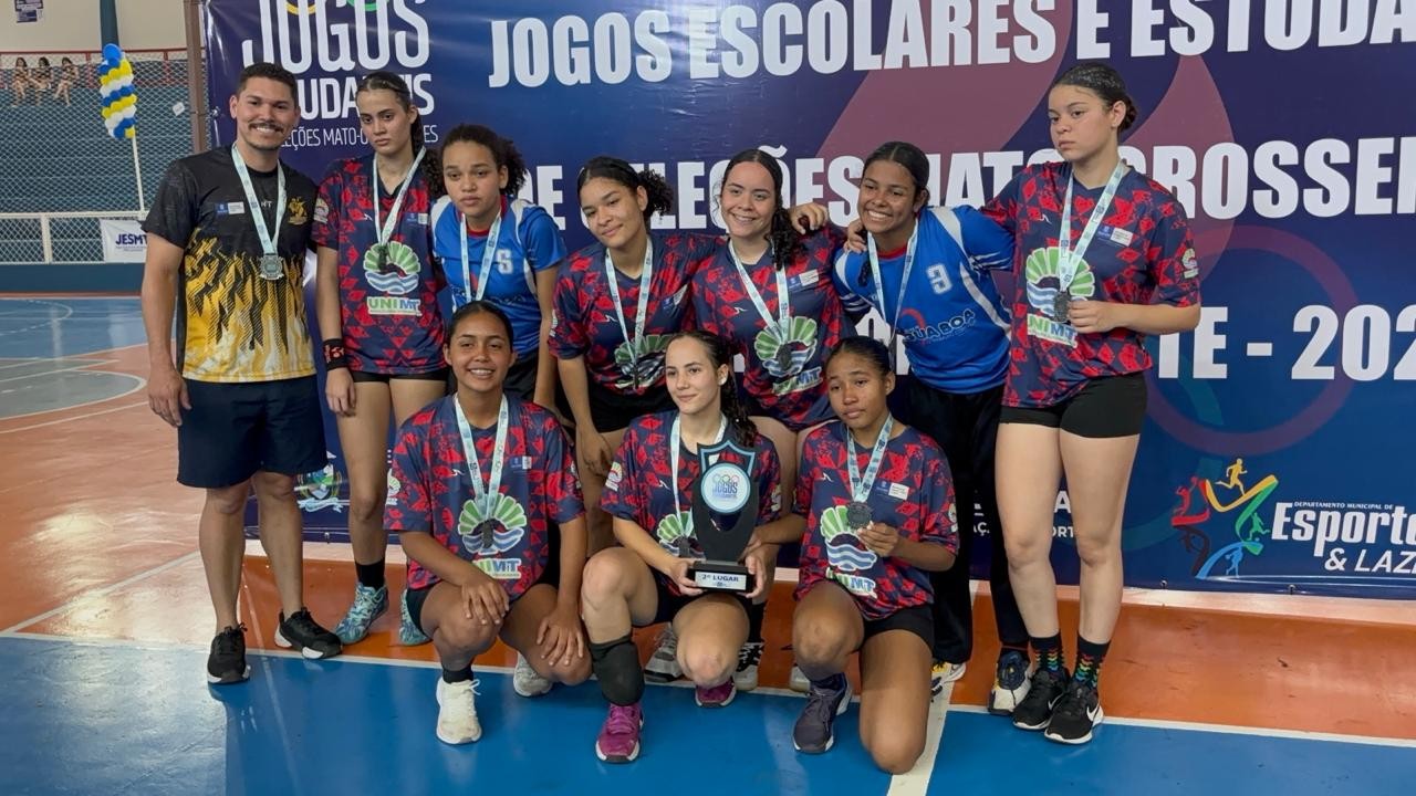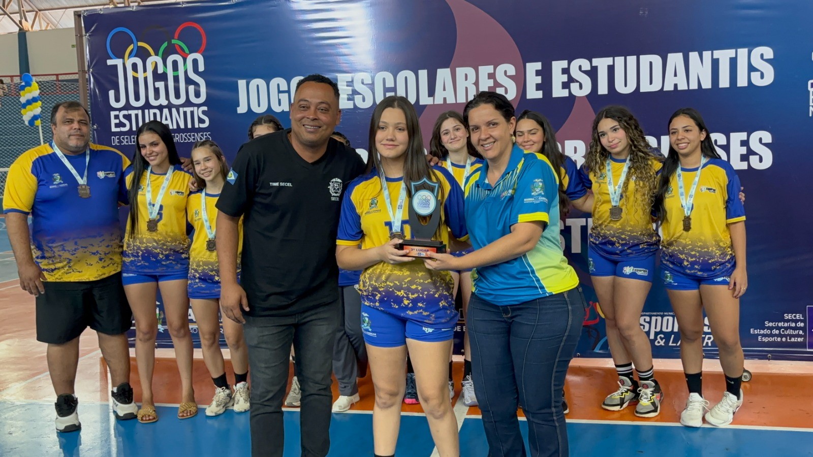 Além da final feminina, o dia contou com mais duas premiações no handebol. A seleção juvenil feminina de Barra do Garças conquistou o terceiro lugar, com muito orgulho e dedicação, demonstrando o crescimento e fortalecimento do esporte escolar no município.