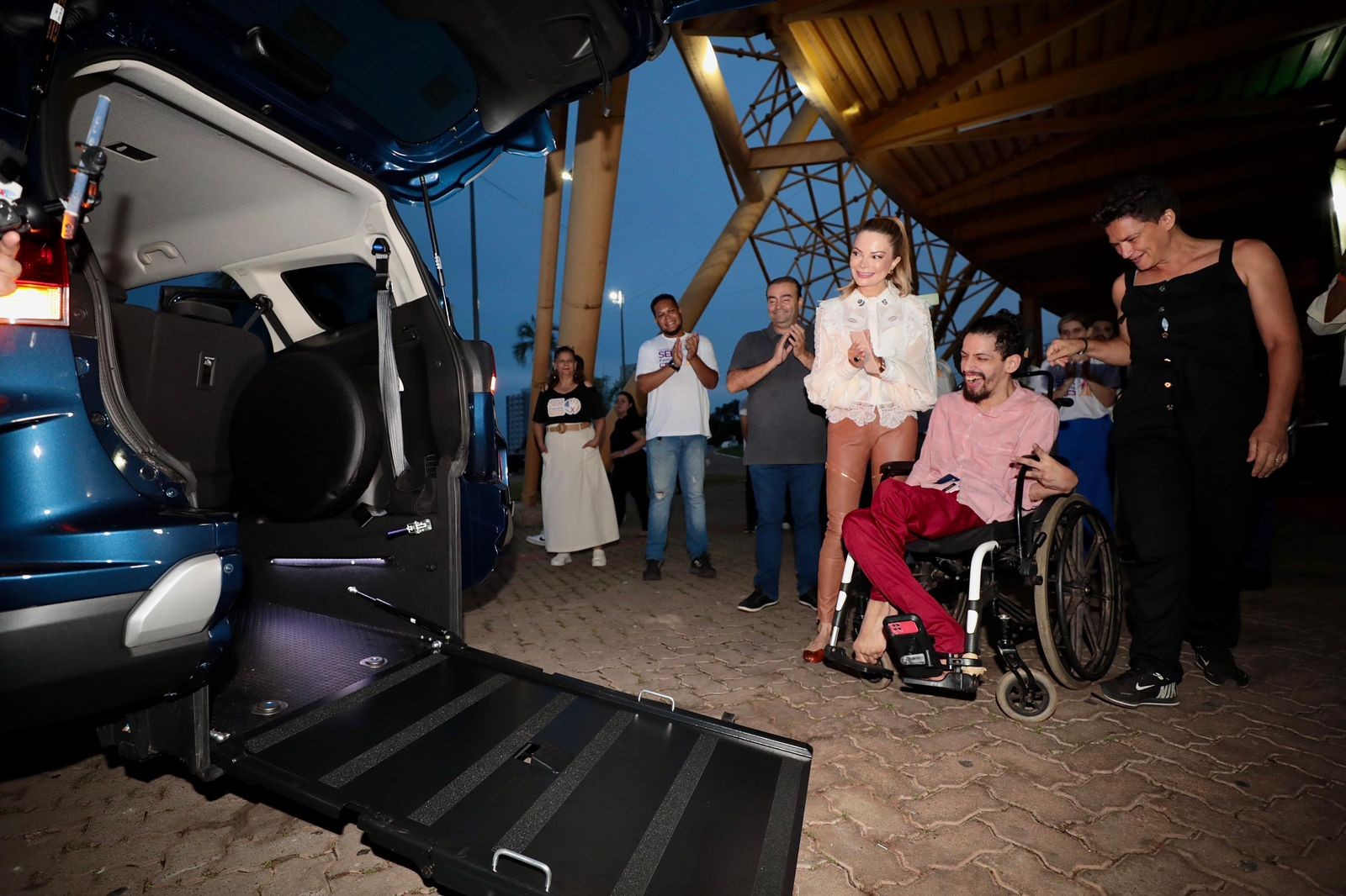 A entrega de um veículo modelo Spin – Chevrolet 1.8, adaptado ao estudante Rafael Matos e sua mãe, Maria do Carmo, foi realizada pela primeira-dama de MT, Virginia Mendes, como parte dos recursos arrecadados no ‘Aniversário do Bem Virginia Mendes’. O evento beneficente foi realizado em maio deste ano, em comemoração ao aniversário da primeira-dama do Estado. A doação do veículo aconteceu na quinta-feira (12.12), no Ginásio Aecim Tocantins, em Cuiabá.