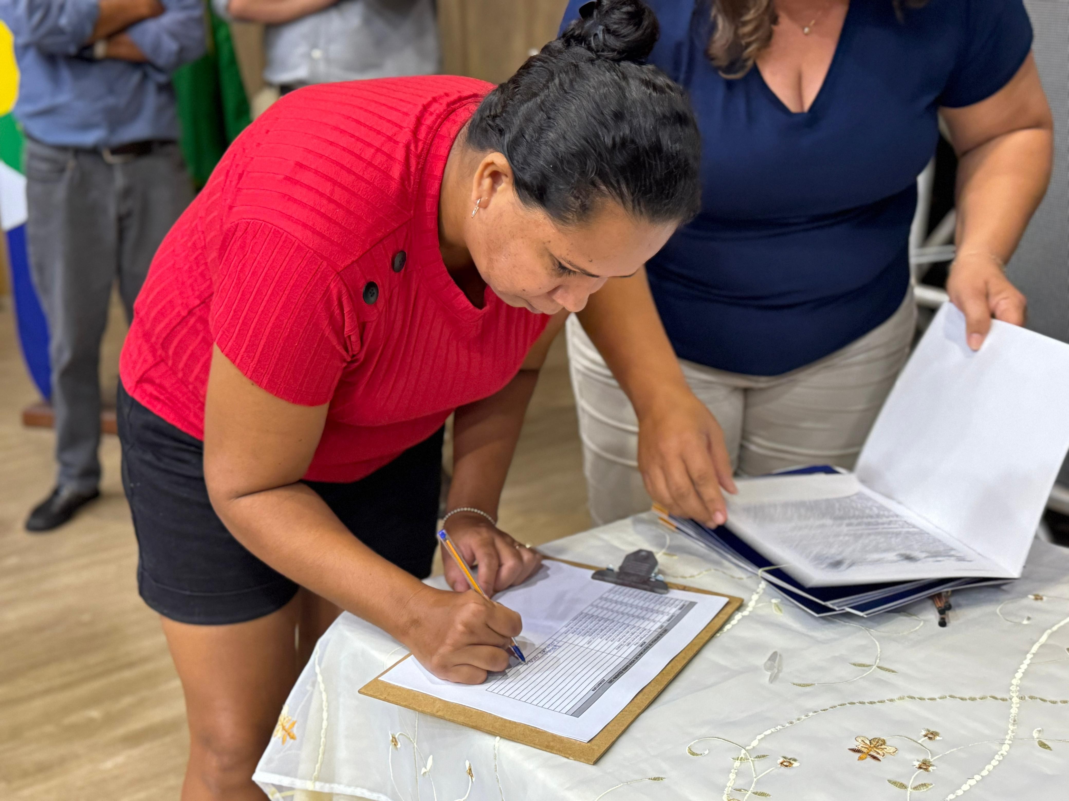 “Nós já recebemos notificação judicial que teríamos invadido a quadra. Em 2023, recebemos uma notificação de despejo. Foi muito triste! Mas, graças a Deus, com muito empenho, o prefeito dr. Adilson e toda a sua equipe regularizaram os nossos imóveis e hoje eu estou recebendo a minha escritura. Estou muito feliz, agora ninguém me tira de lá”, contou Clesia Sales.