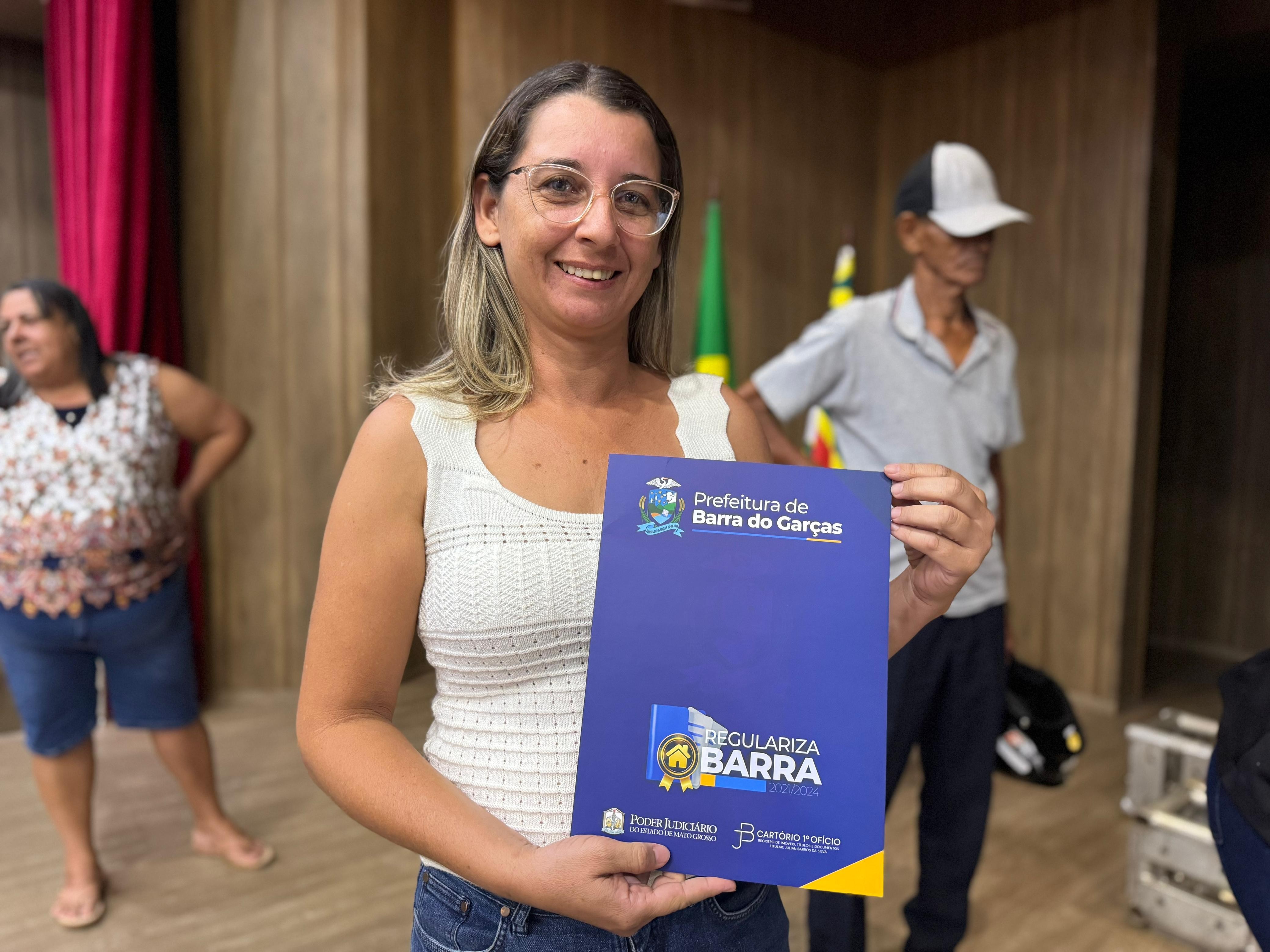 Na última terça-feira (17), 41 famílias, moradoras das quadras 526 e 540, do bairro Nova Barra do Garças, realizaram o sonho de ter em mãos a escritura de seus imóveis. A cerimônia de entrega, promovida pela Prefeitura de Barra do Garças, por meio da Secretaria de Planejamento, foi realizada no anfiteatro Fernando Peres de Farias.