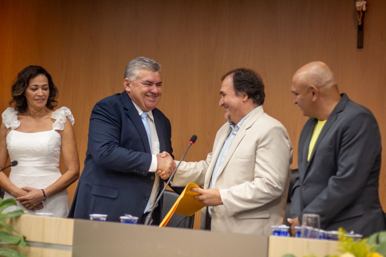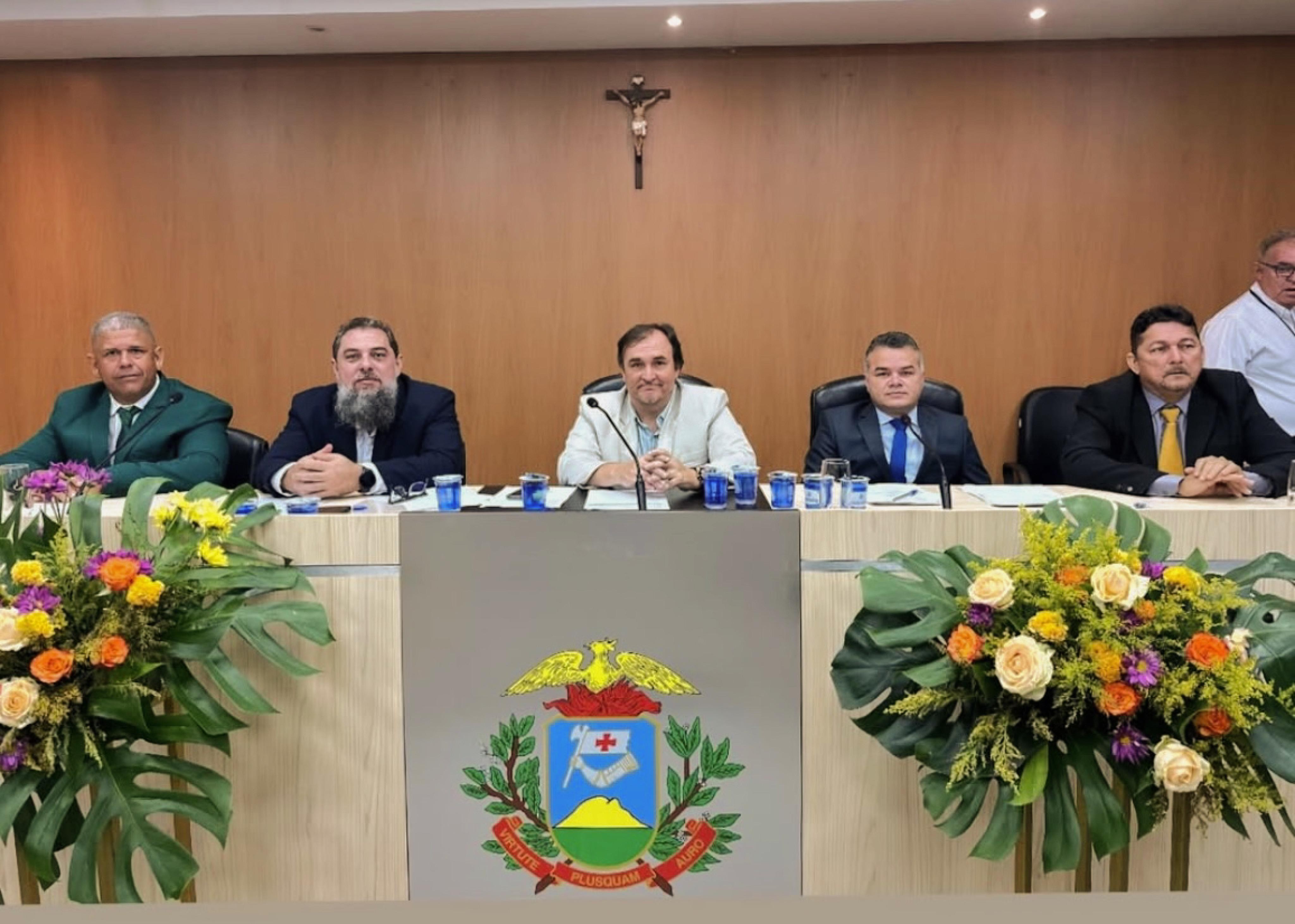 Na sequência, ocorreu a eleição da Mesa Diretora da Câmara do biênio 2025/2026, que elegeu, com unanimidade de votos, o vereador Alex Matos, como presidente da Casa. Também foram eleitos o vereador Jaime Rodrigues, como vice-presidente, Elton Melo, como 1º secretário, e Allan Construtor, como 2º secretário.