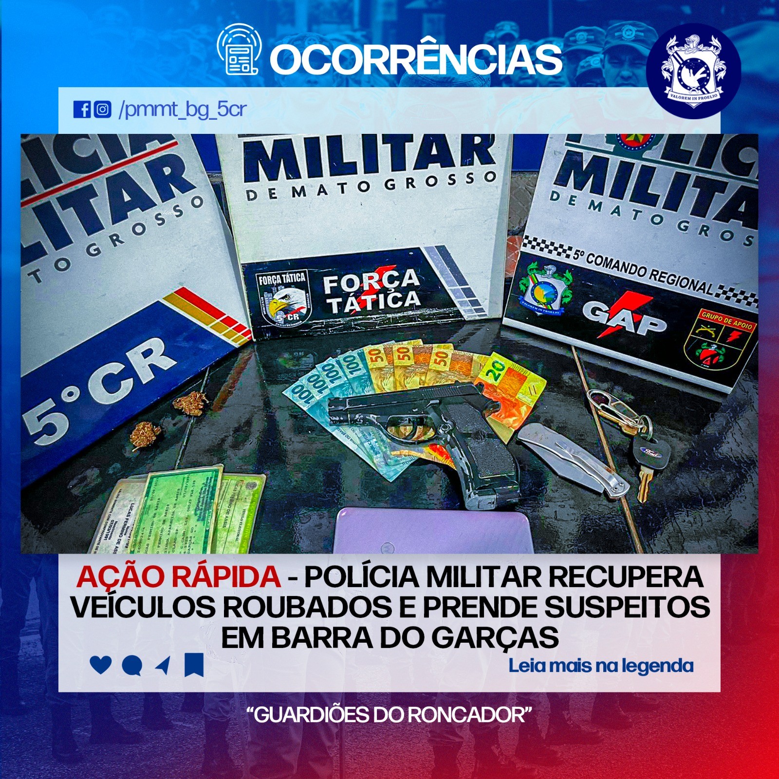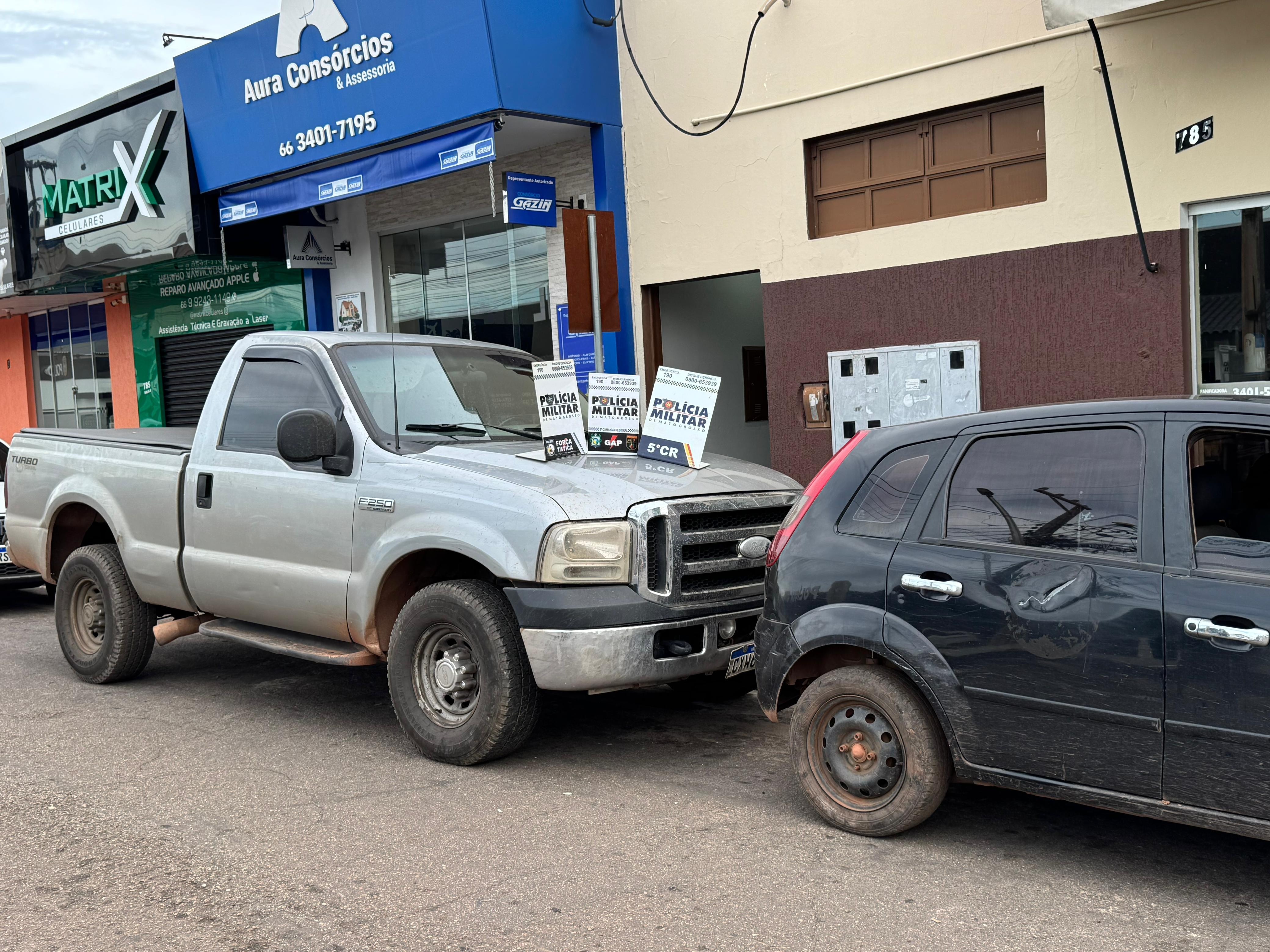 Em continuidade a Operação Tolerância Zero ao Crime Organizado, uma ação rápida e eficaz da Polícia Militar, no início da tarde deste sábado (11), resultou na recuperação de dois veículos roubados e na prisão de dois suspeitos após um assalto violento ocorrido em uma propriedade rural na MT-100, km 11, sentido Torixoréu.