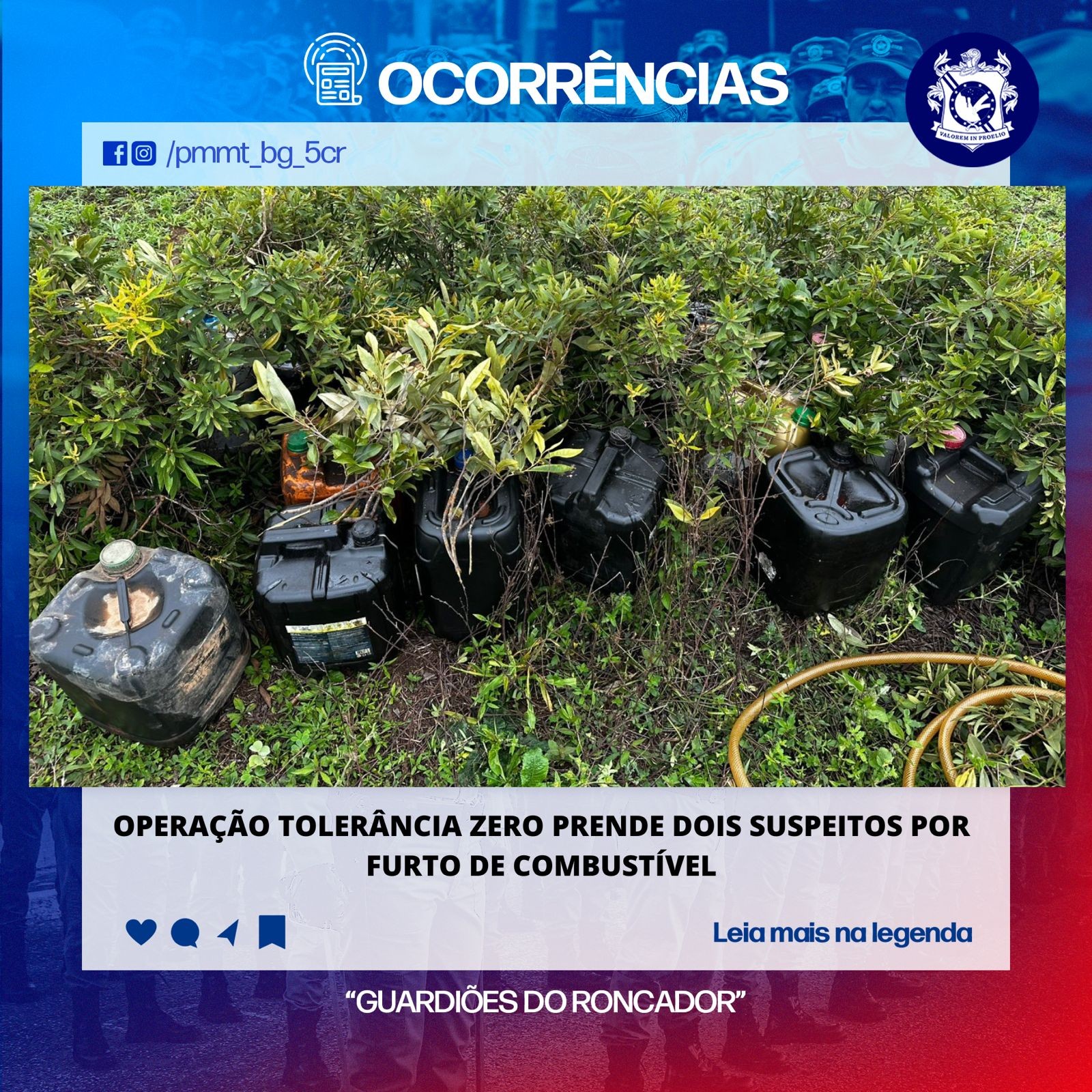 OPERAÇÃO TOLERÂNCIA ZERO PRENDE DOIS SUSPEITOS POR FURTO DE COMBUSTÍVEL