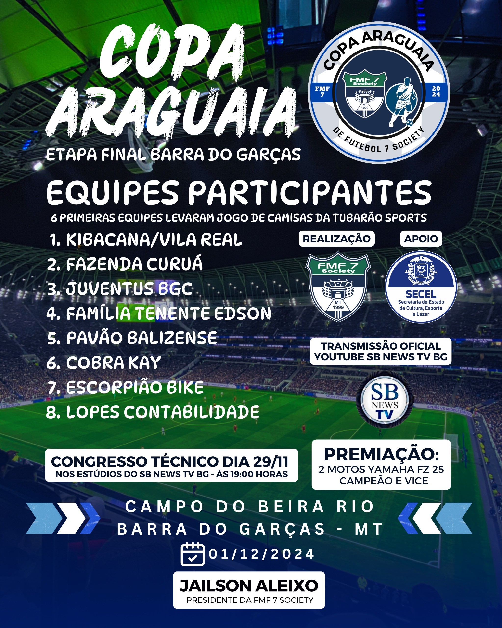 A Federação Mato-Grossense de Futebol 7 Society (FMF 7 SOCIETY) tem o prazer de anunciar a Copa Araguaia - Etapa final Barra do Garças, um dos maiores eventos esportivos da região.