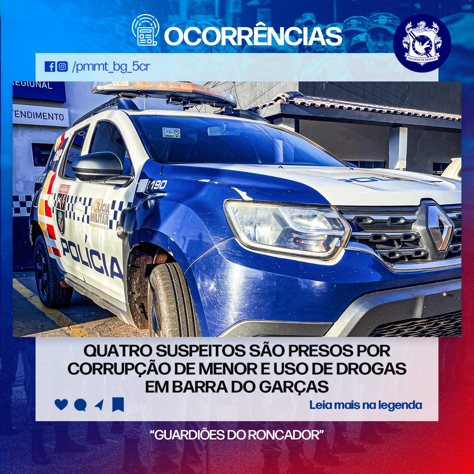 5º Comando Regional, prenderam quatro suspeitos pelos crimes de corrupção de menor e uso ilícito de entorpecente em Barra do Garças (509 km de Cuiabá).